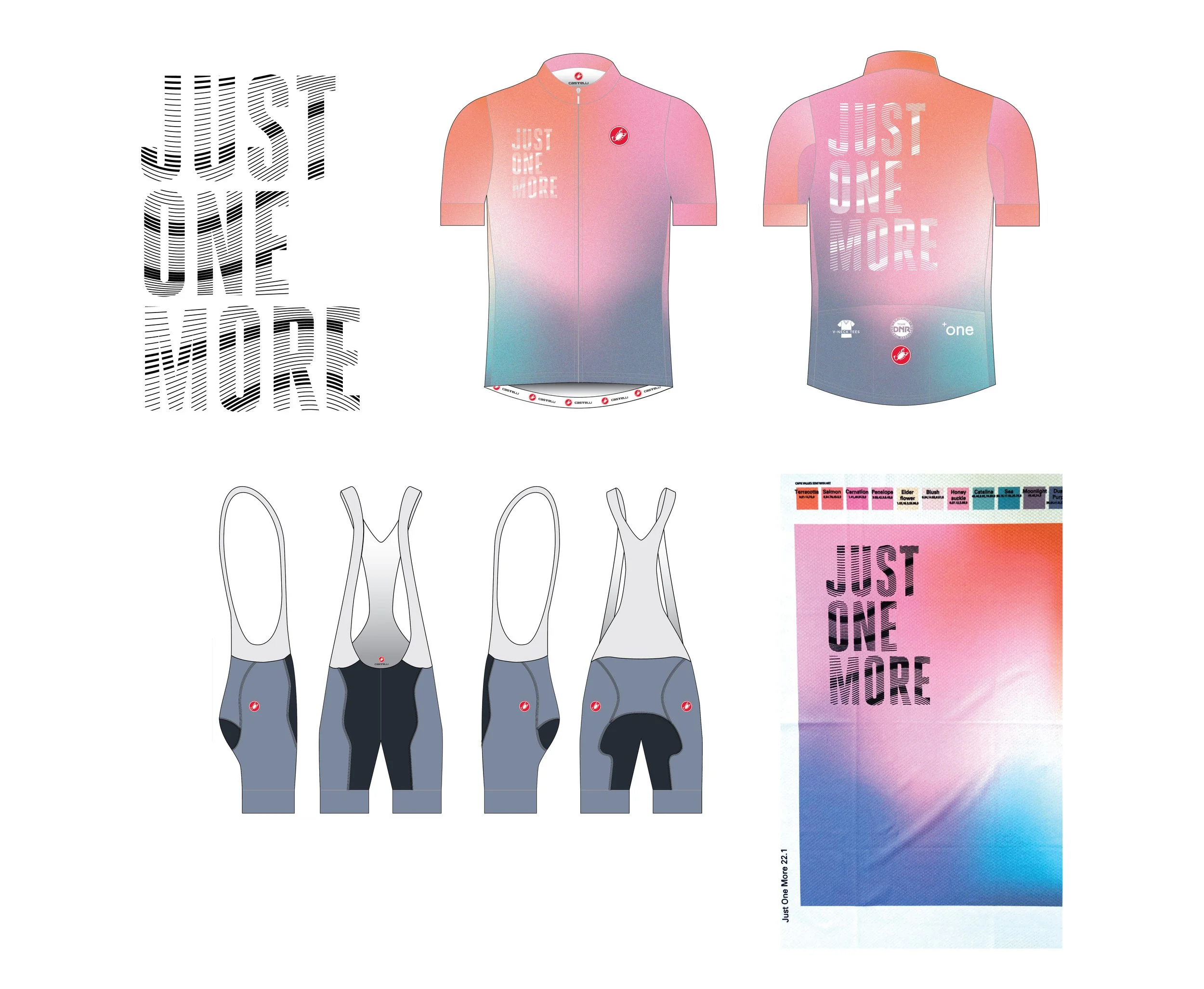 We worked with Castelli to create a colorful, but simplified aesthetic, and also designed a new logo for the team. “Just One More,” references conversations on previous rides (just one more hill, just one more beer, just one more mile) that keep us going and get us through the day.